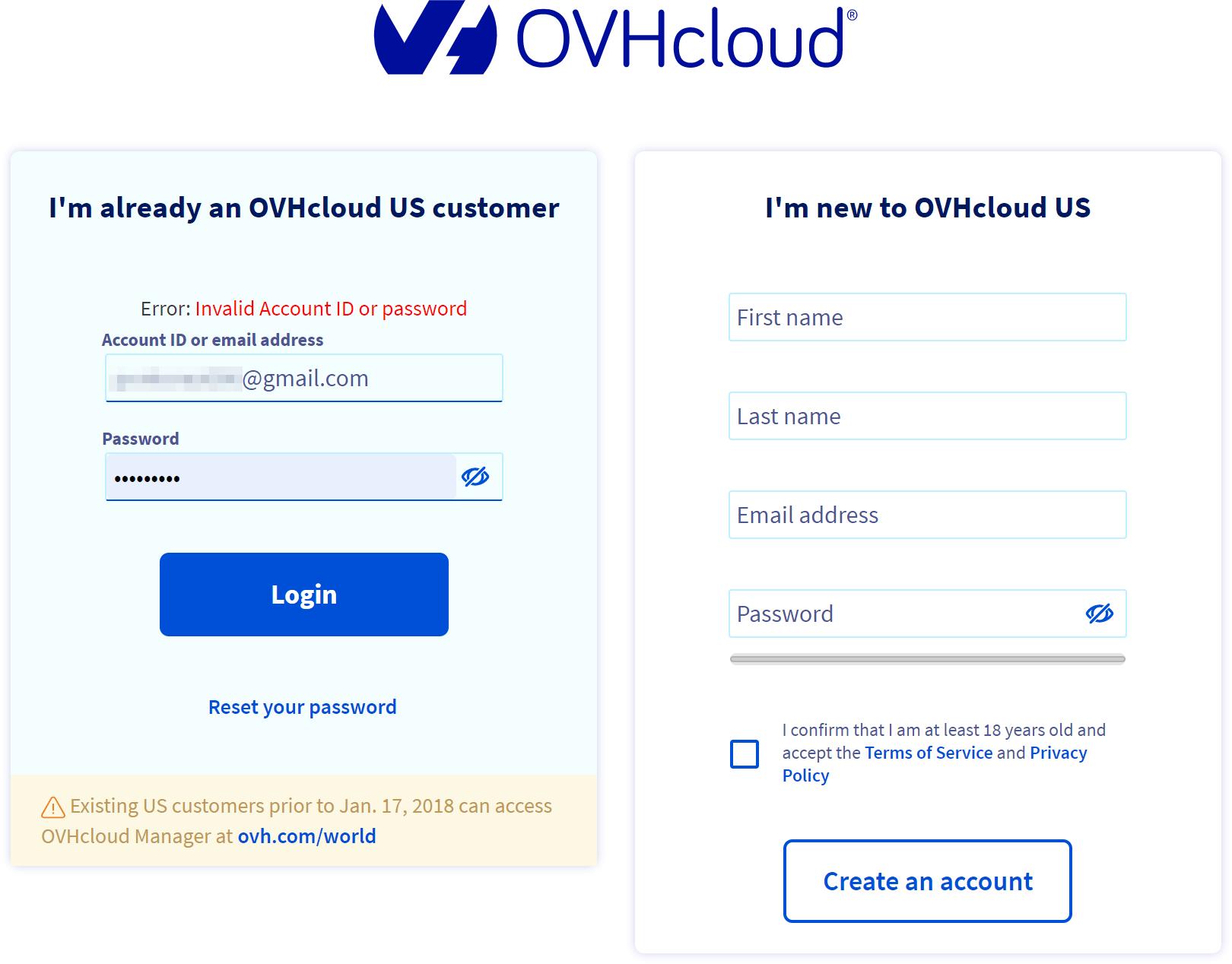 I tried to login into control panel (https://us.ovhcloud.com/auth/)